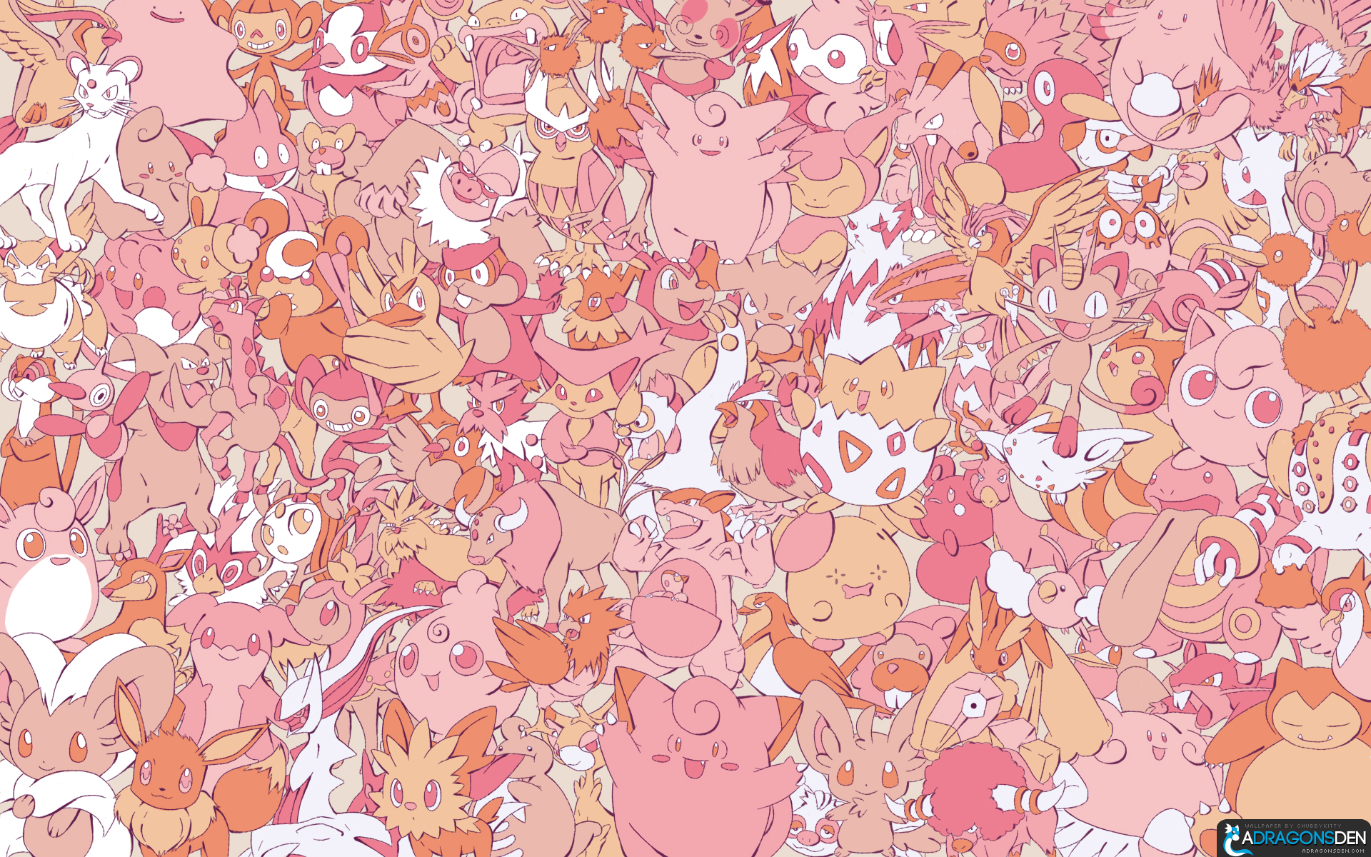 Description: A large group of cats all together in a pattern of pink and orange colors.