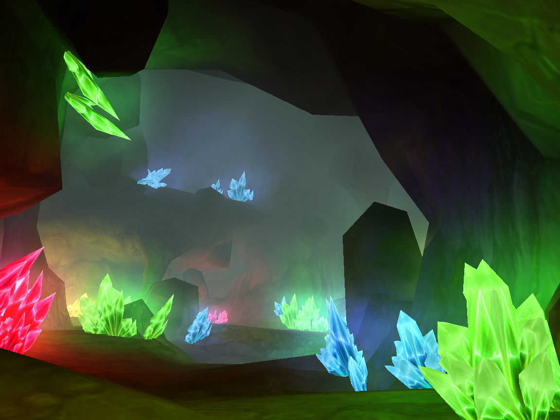 Description: A cave with a lot of colorful lights in it's walls and a cave like structure with a cave like structure in the middle.