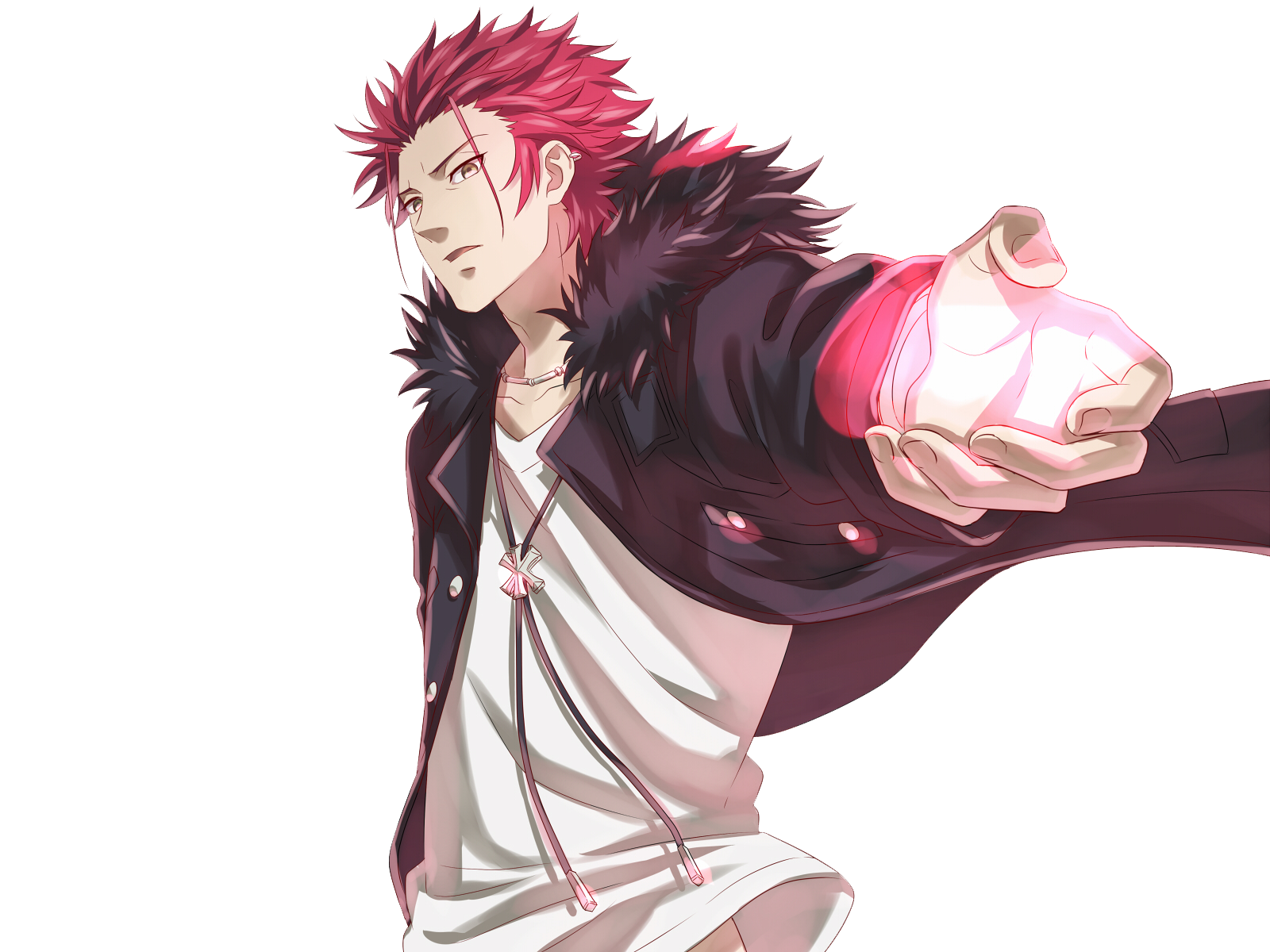 Description: A man with red hair and a black jacket holding a pink object in his hand and a white shirt on.