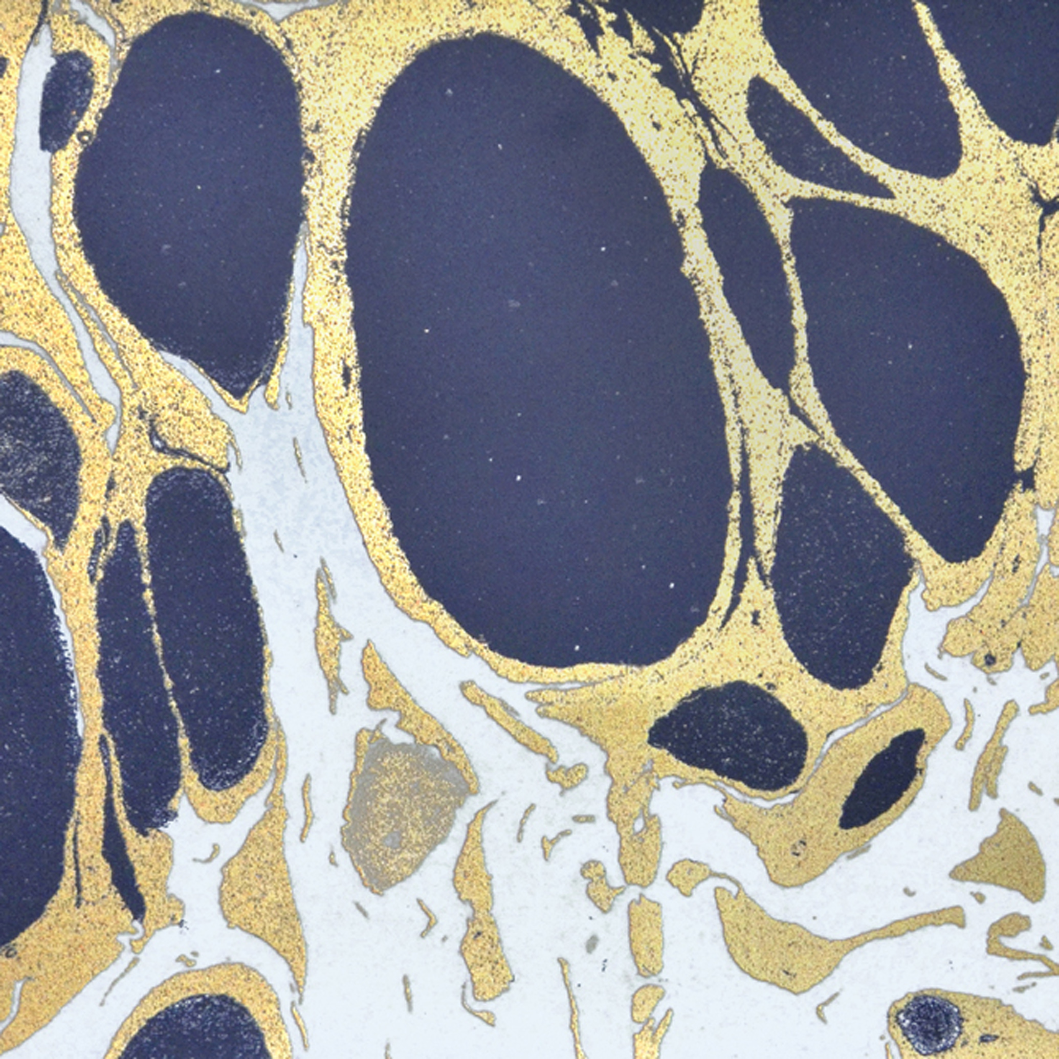 Description: A close up of a cell phone with a yellow and black pattern on it's side and a black and white background.