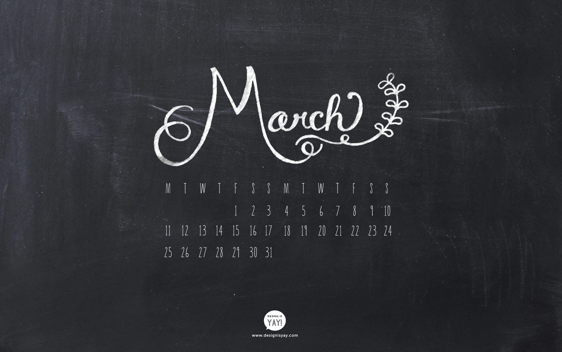 Description: A chalkboard calendar with the word march written in white chalk on it's blackboard background with a floral design.