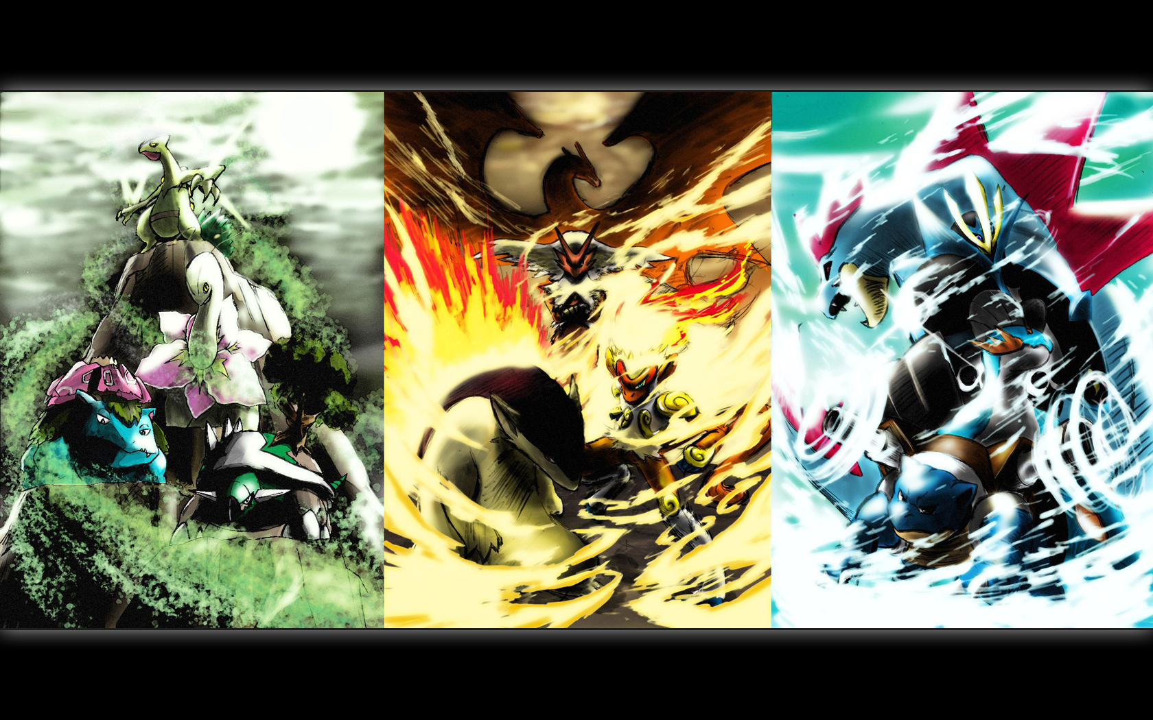 Description: A series of three pictures of different characters in different poses and colors.