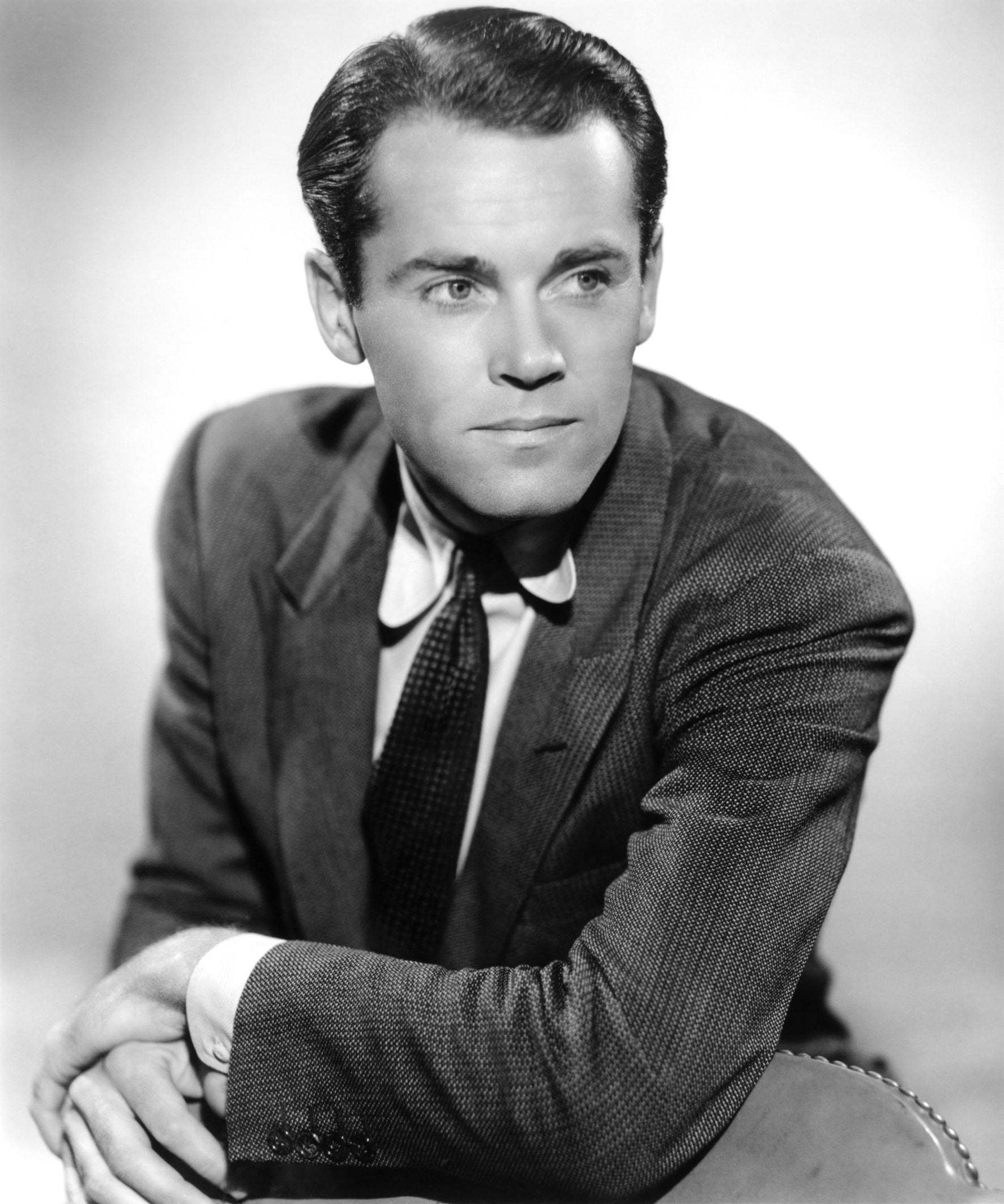 Description: A man in a suit and tie posing for a picture with his arms crossed and his hand on his chest.