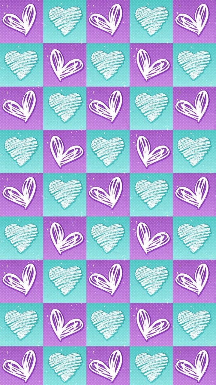 Description: A checkered pattern with hearts on a purple and blue background photo of a heart on a purple and blue background.
