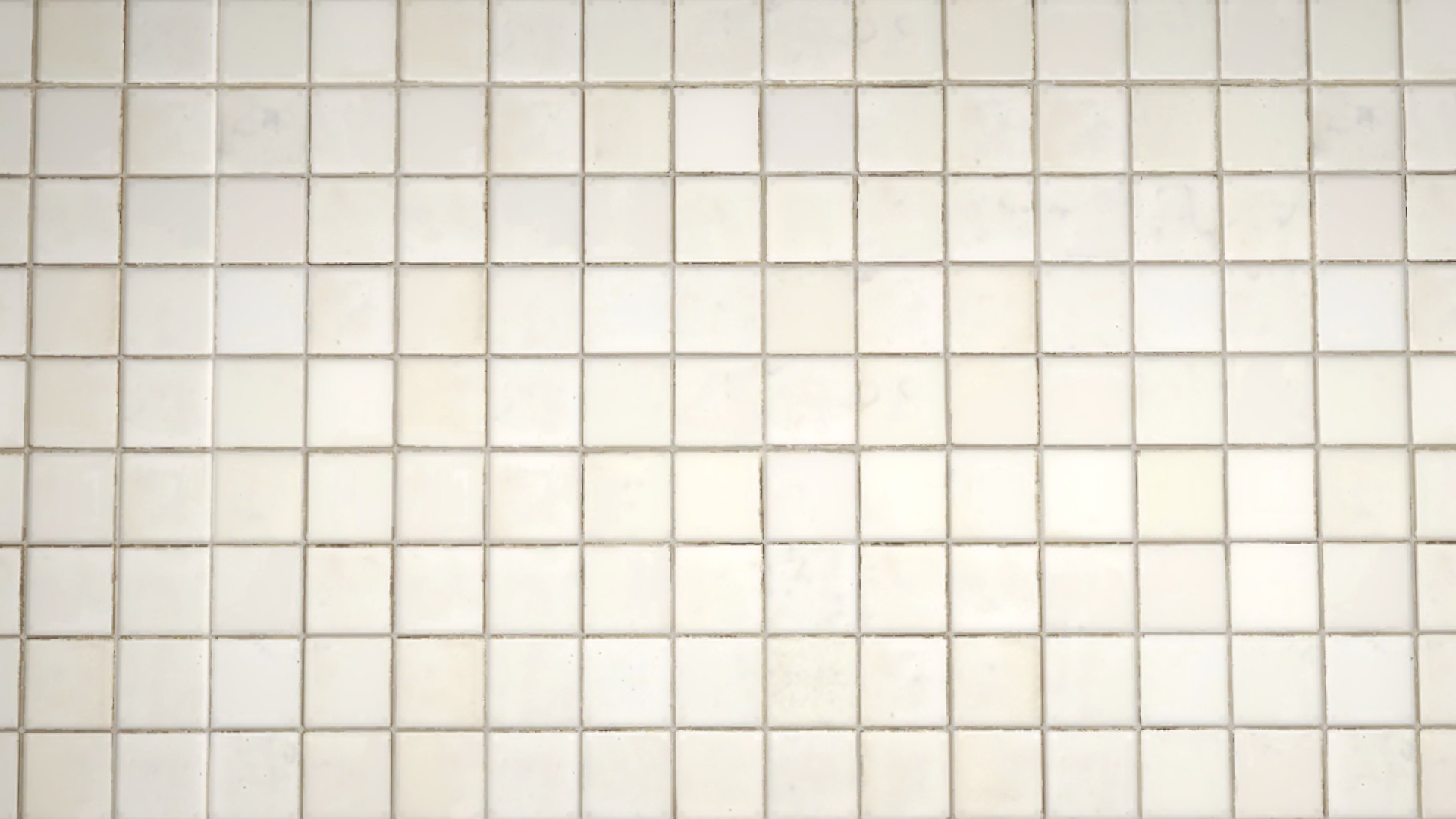 Description: A white tiled wall with a black and white cat on it's side and a black and white cat on the other side.