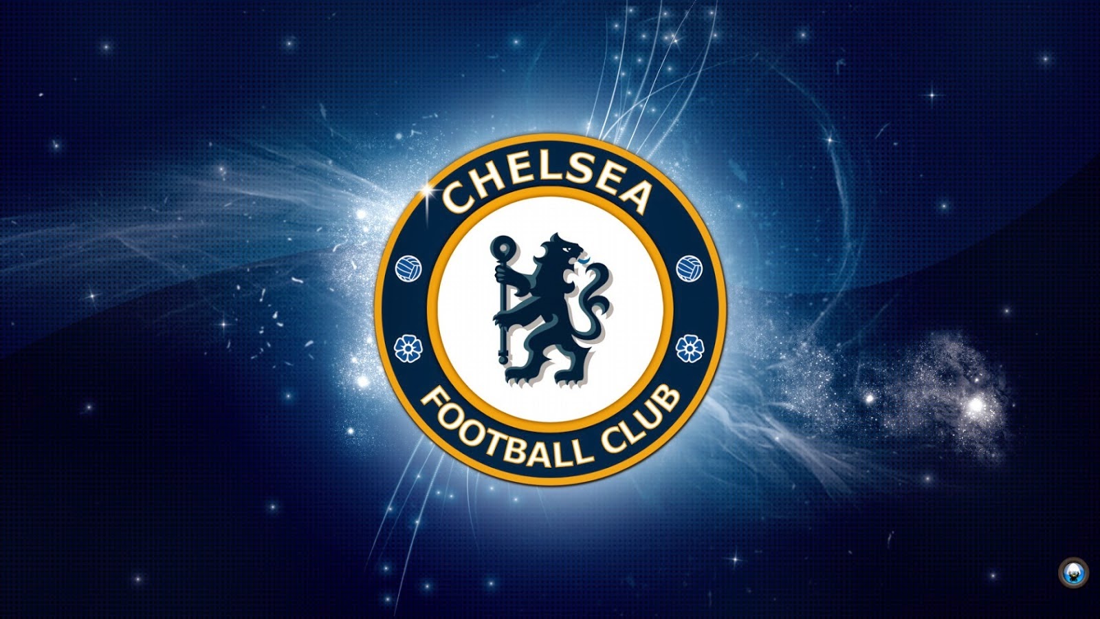 Description: A chelsea logo on a blue background with stars and a swirl of light around it and a blue background with a white lion.