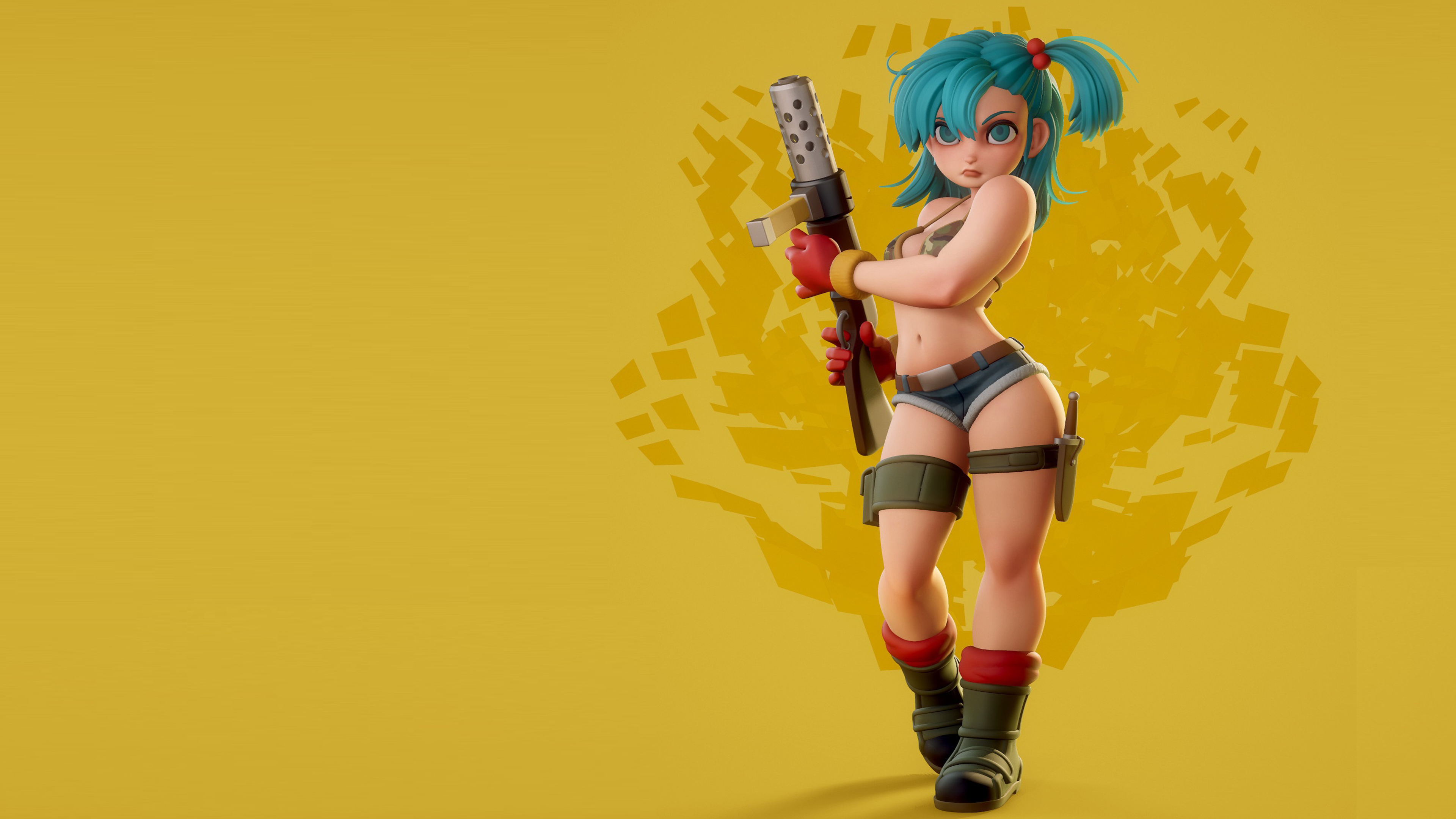 Description: A cartoon character holding a sword and wearing a short skirt and boots with a yellow background behind her is a stylized image.