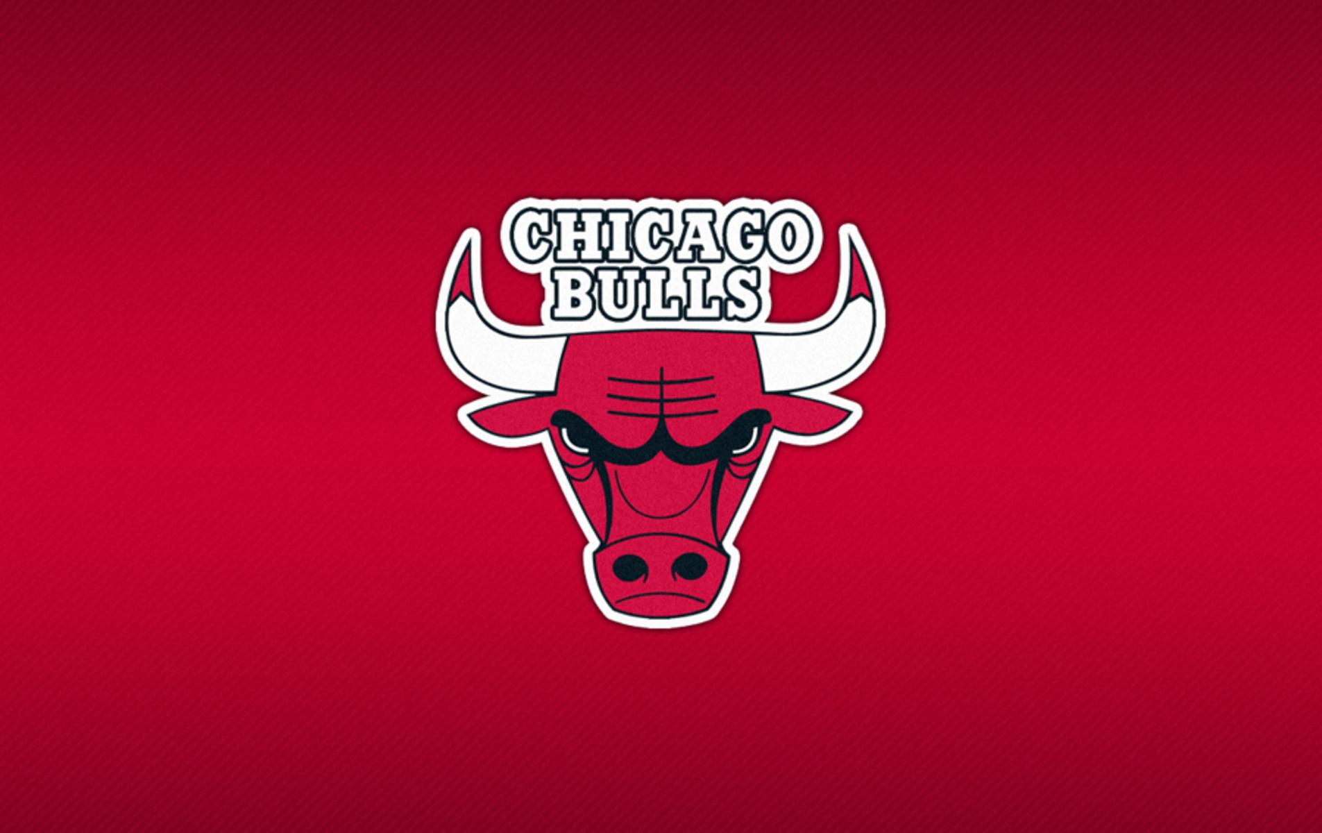 Description: A chicago bulls logo on a red background with a white bull's head on the side of the logo.