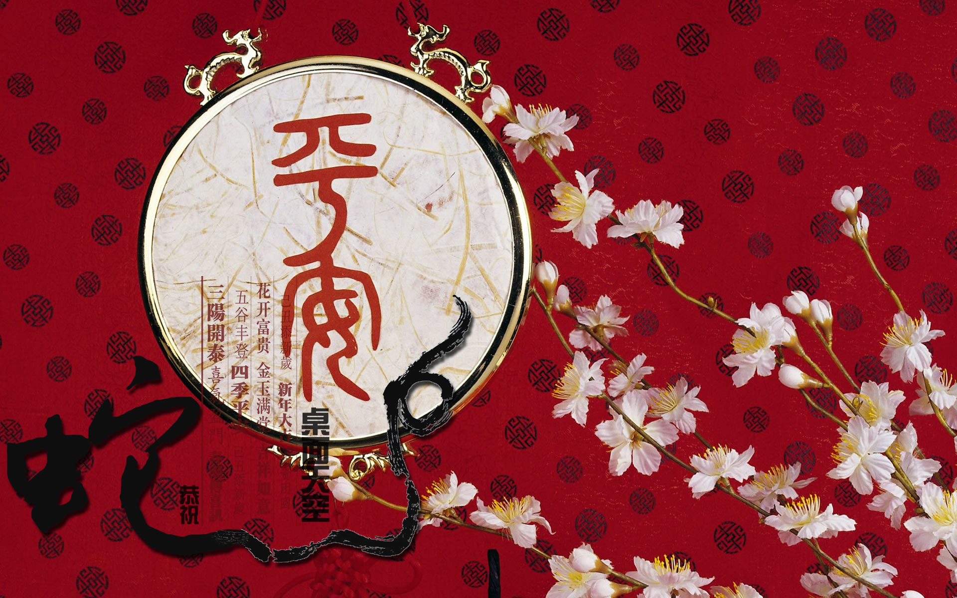 Description: A picture of a chinese sign with flowers on a red background with a chinese writing on it and a picture of a cat.