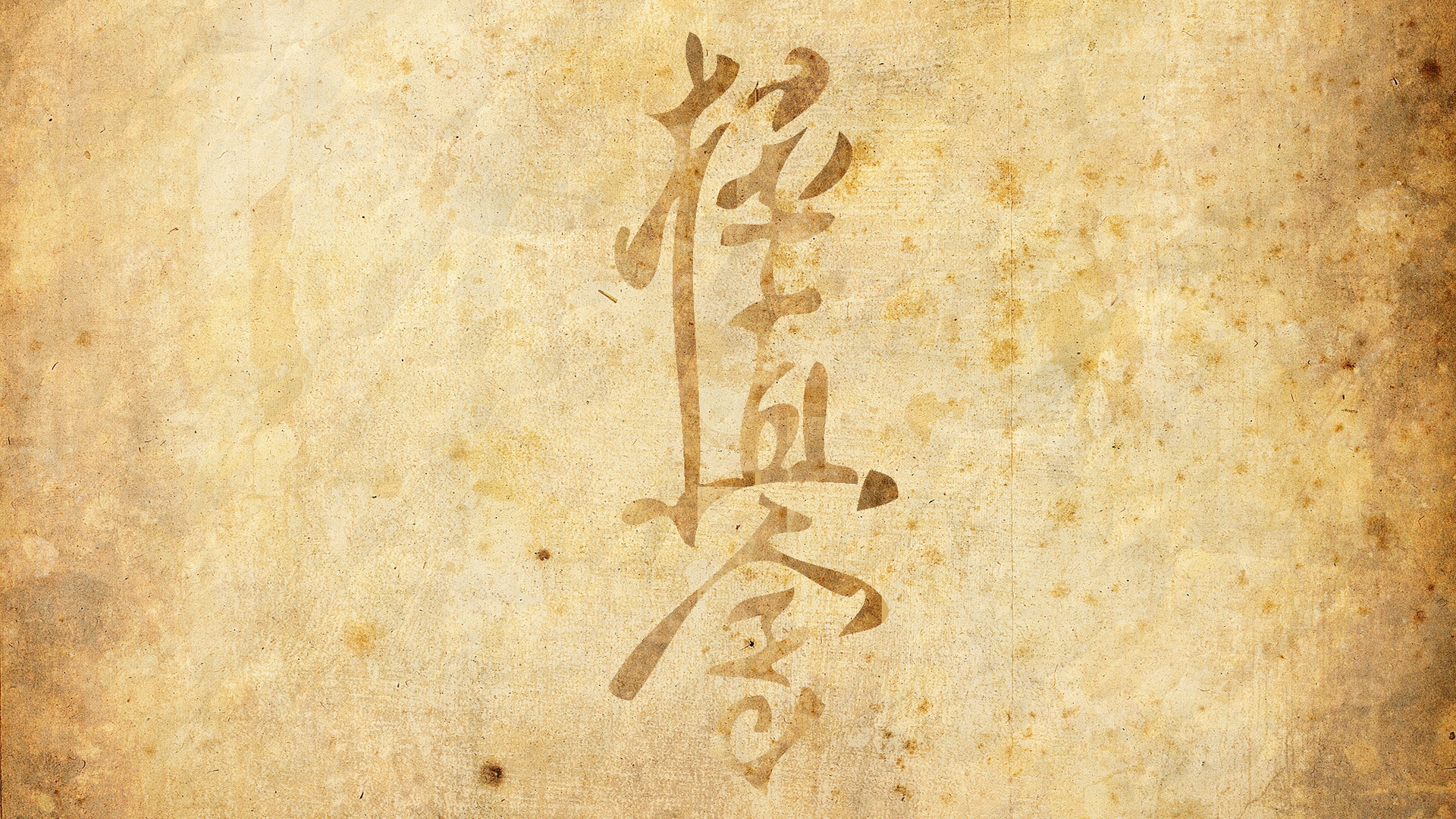 Description: A painting of a chinese writing on a wall with a clock on it's side and a clock on the wall.