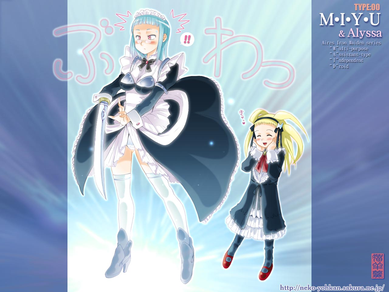 Description: A couple of anime characters standing next to each other on a blue background with a white background and a blue background with a white border.