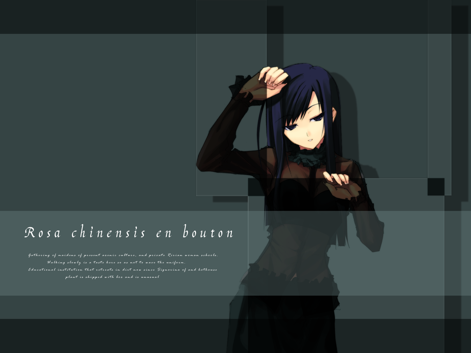 Description: A woman with long hair and a black dress is holding her head in her hands and looking at the camera.
