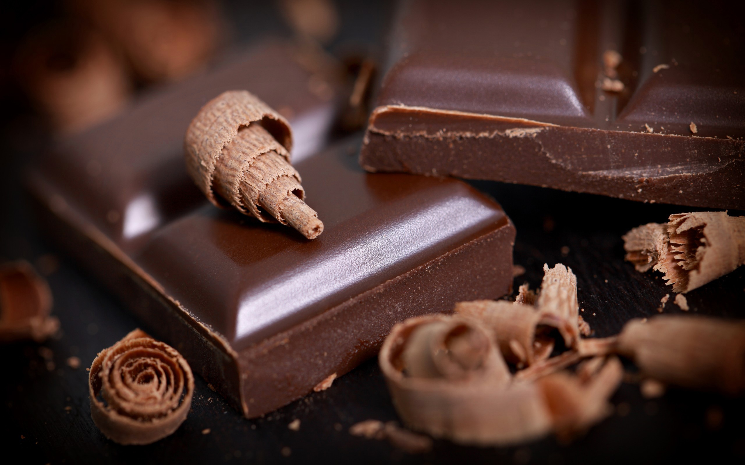Description: A chocolate bar with a piece of chocolate on top of it and a piece of chocolate on the side.