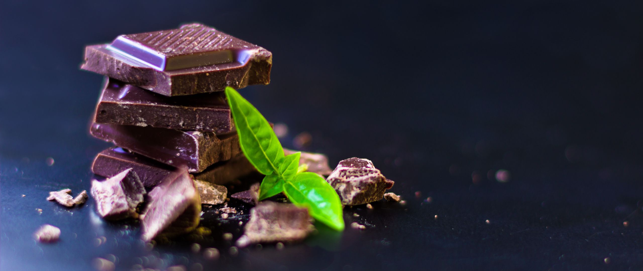Description: A pile of chocolate with a green leaf on top of it and some other pieces of chocolate on the ground.