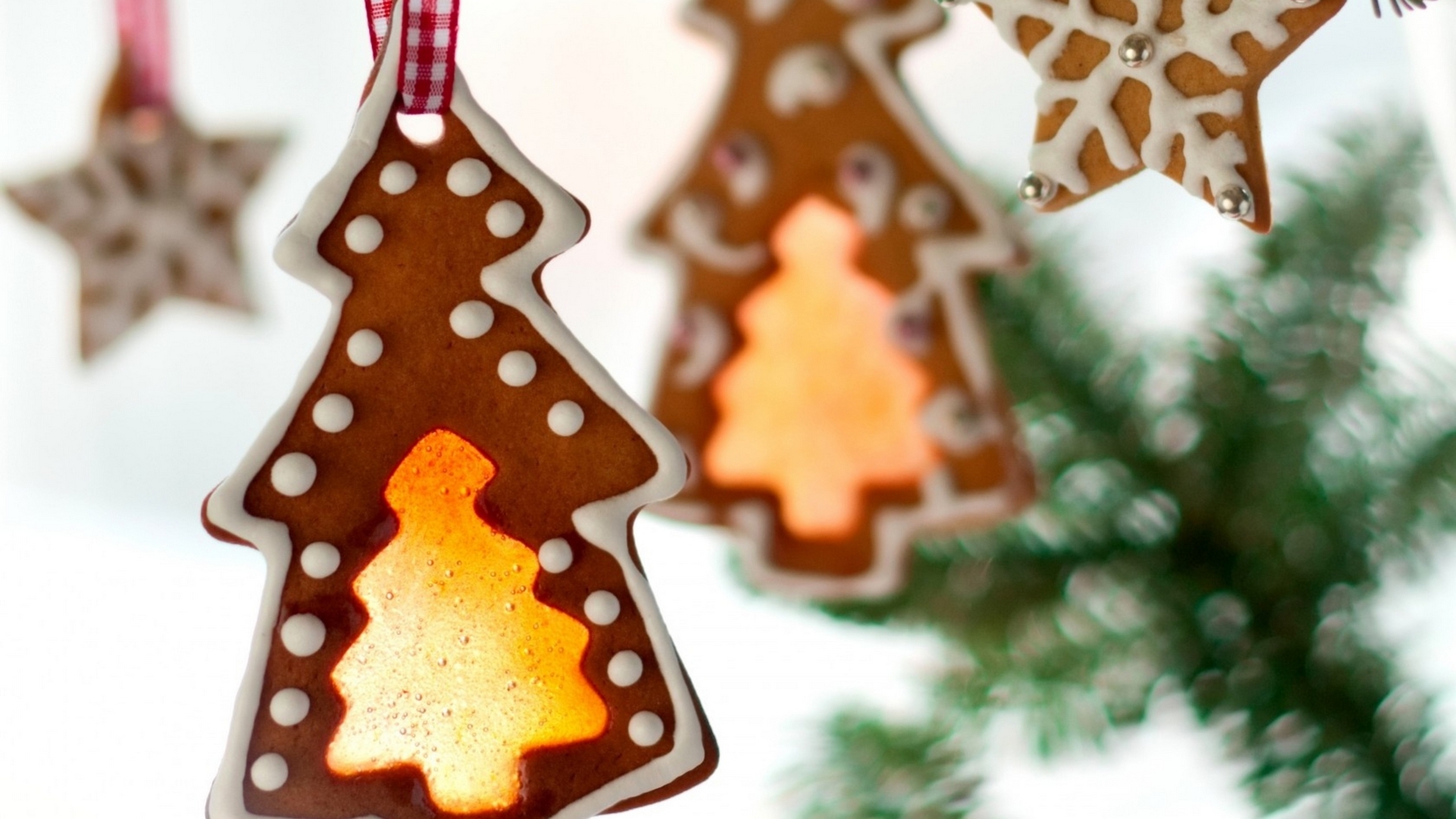 Description: A group of christmas ornaments hanging from a tree branch with snowflakes on them and a star ornament.
