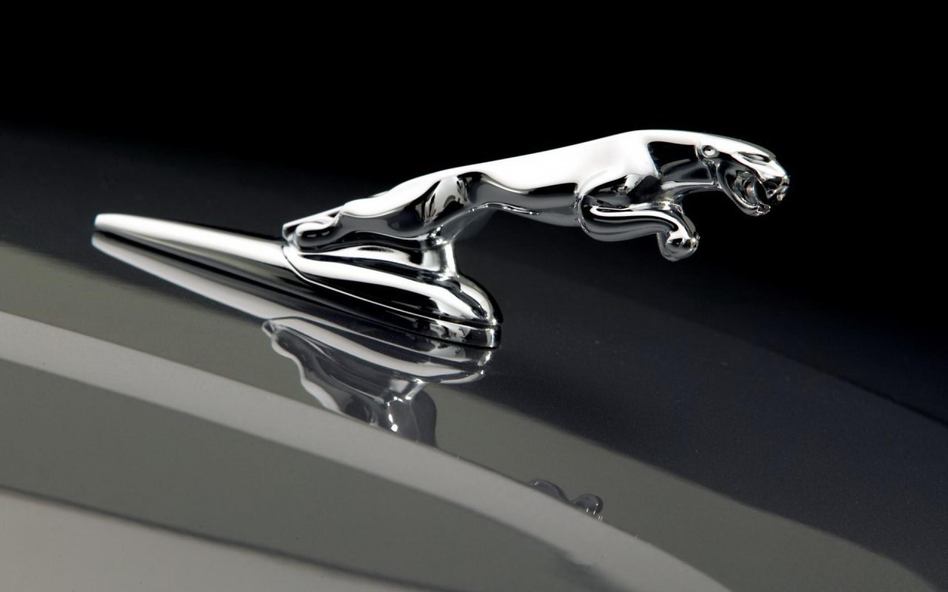 Description: A chrome car emblem with a black background and a reflection of a cat on the hood of it's hood.