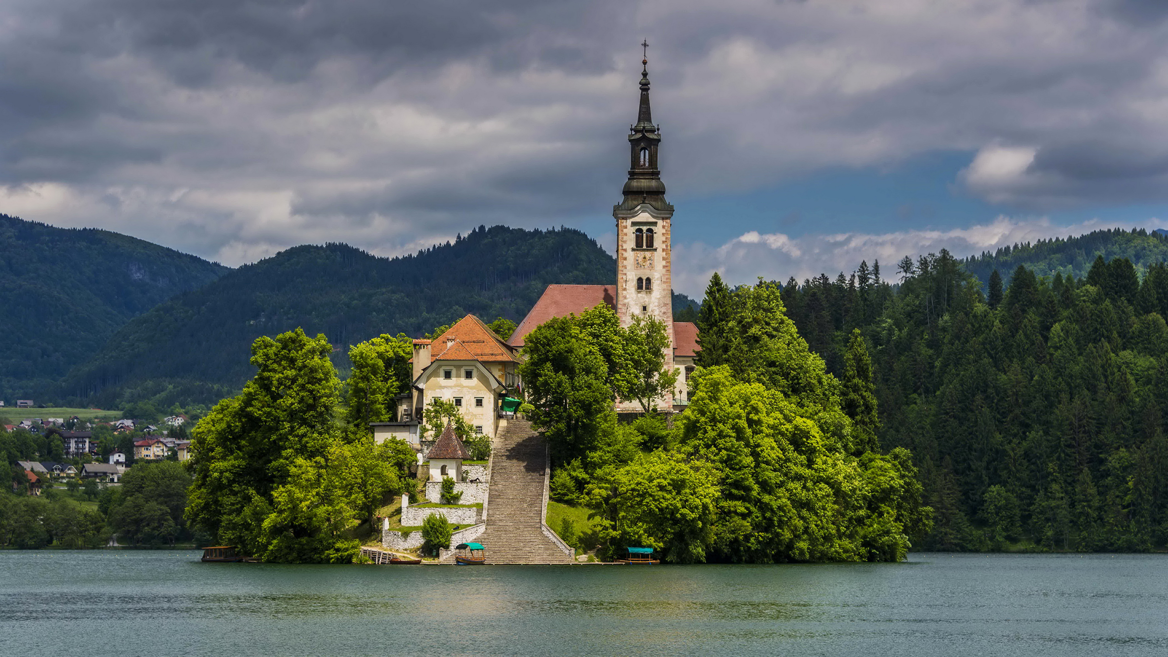 Description: A church on a small island in the middle of a lake with a church on top of it.