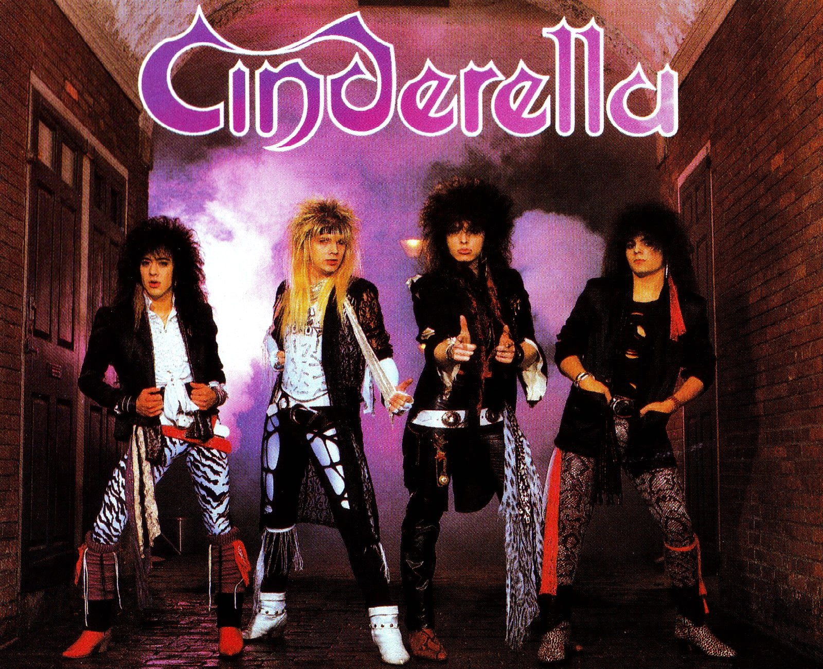 Description: A group of young women standing next to each other in a hallway with a purple background and the word cinderella on it.