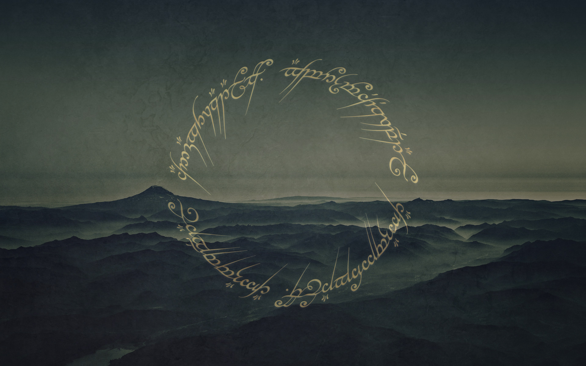 Description: A circle of writing on a mountain top with a sky background and a dark sky in the background with a few clouds.