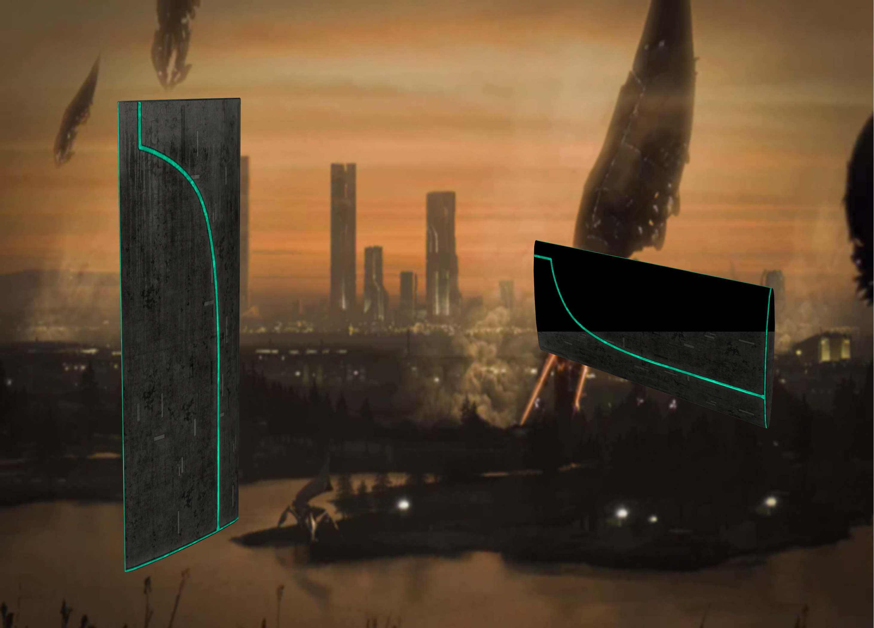 Description: A picture of a city with a green line going up the side of it and a picture of a city with a green line going up the side.