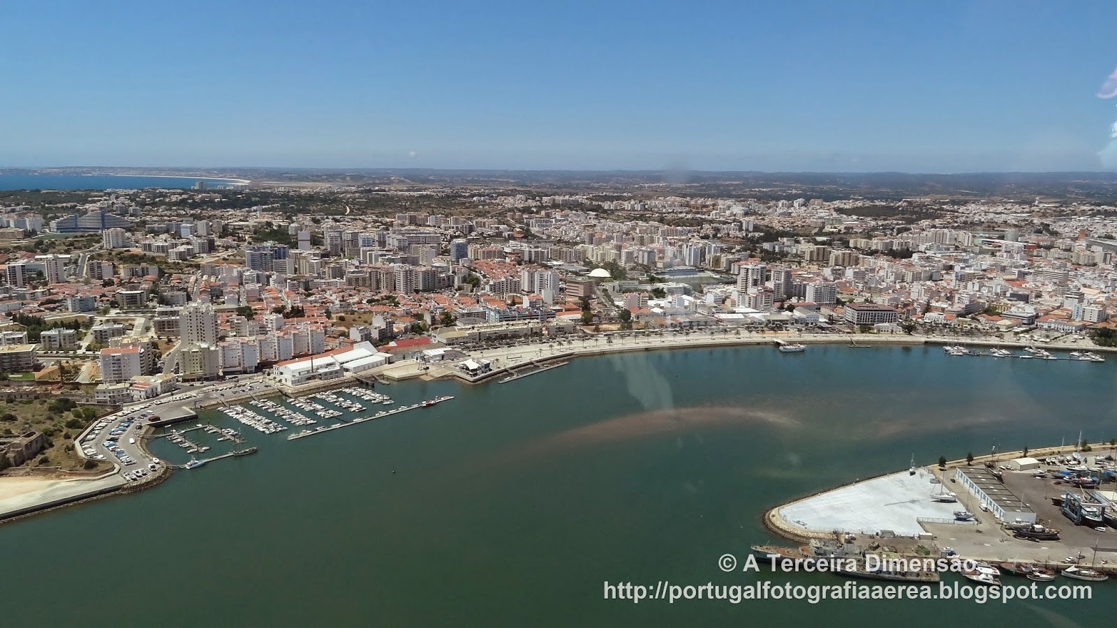 Description: A city with a harbor and a marina in the middle of it.
