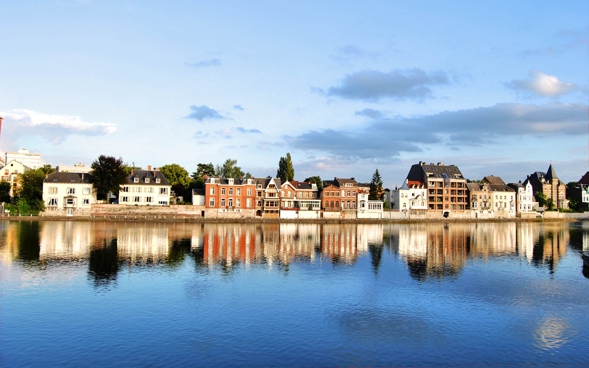 Description: A city with a lake and buildings on the other side of it and a cloudy sky above it and a few clouds in the sky.