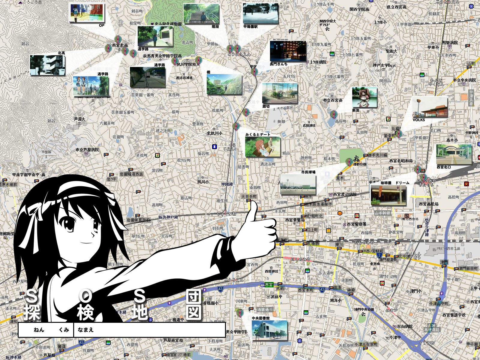 Description: A map of a city with a girl pointing at it with a thumbs up sign in front of her.
