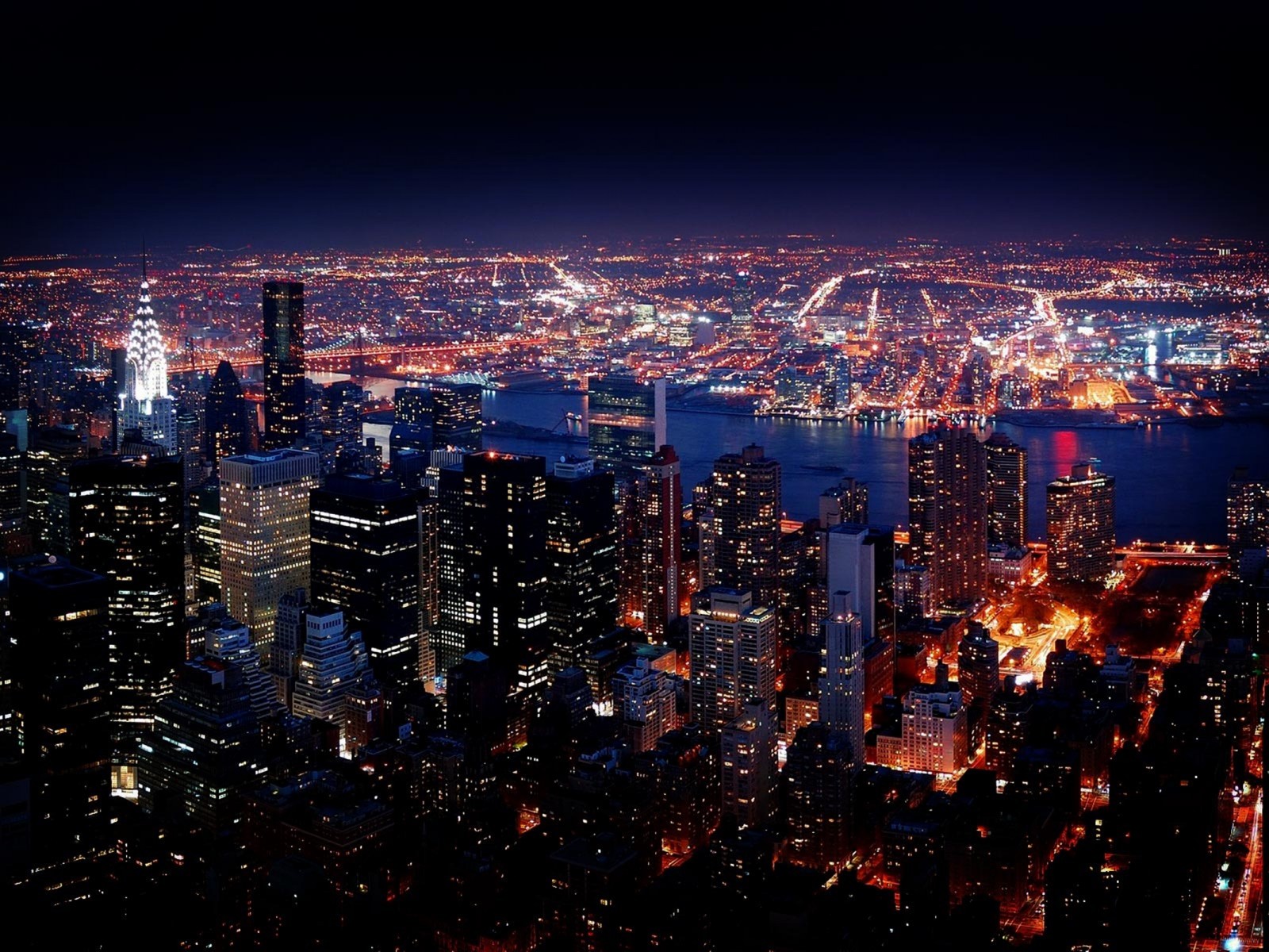 Description: A city at night with a lot of lights on it and a lot of buildings in the background and a lot of water.