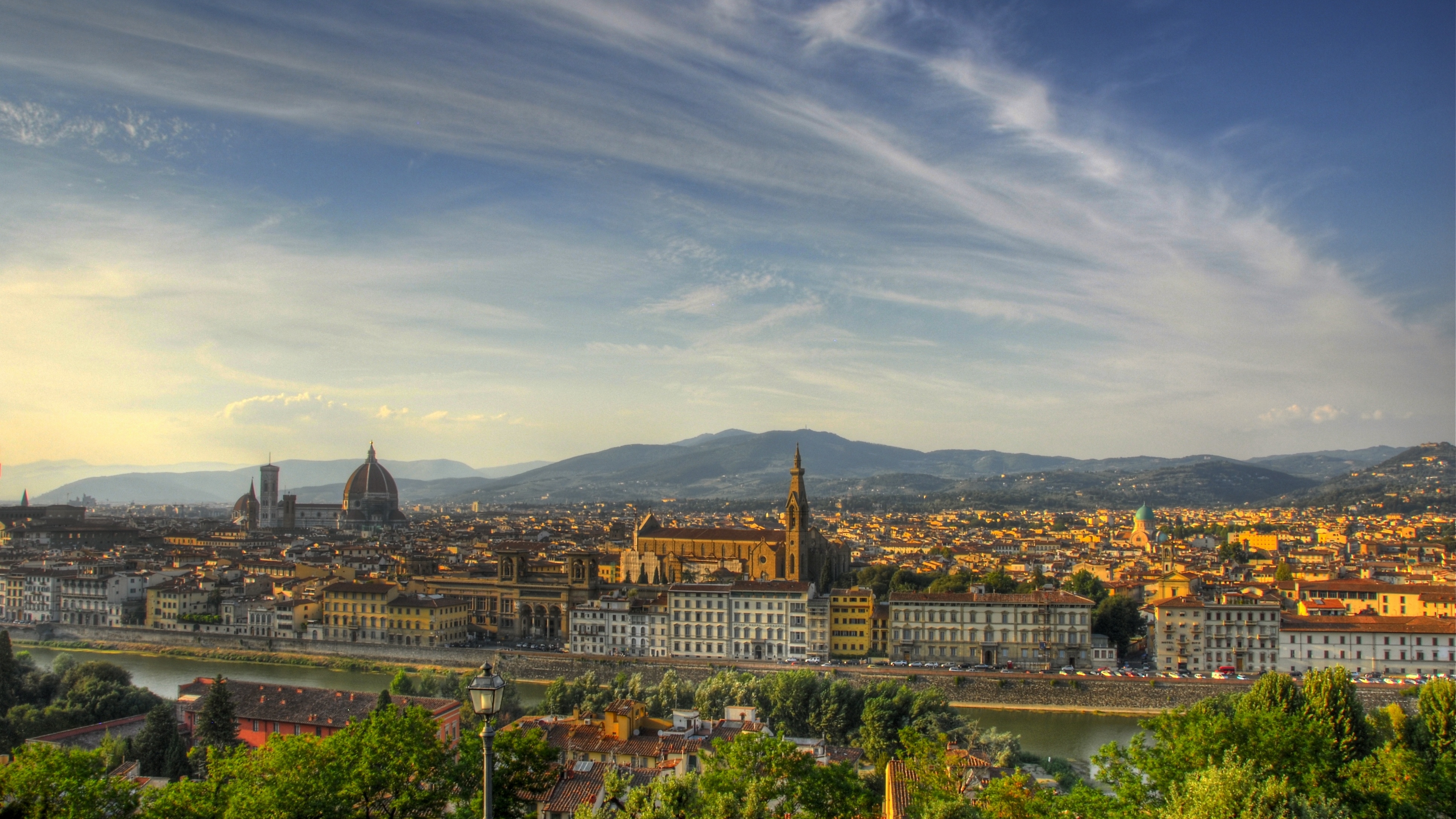 Description: A city with a river running through it and a bridge crossing over it with a bridge going through it.