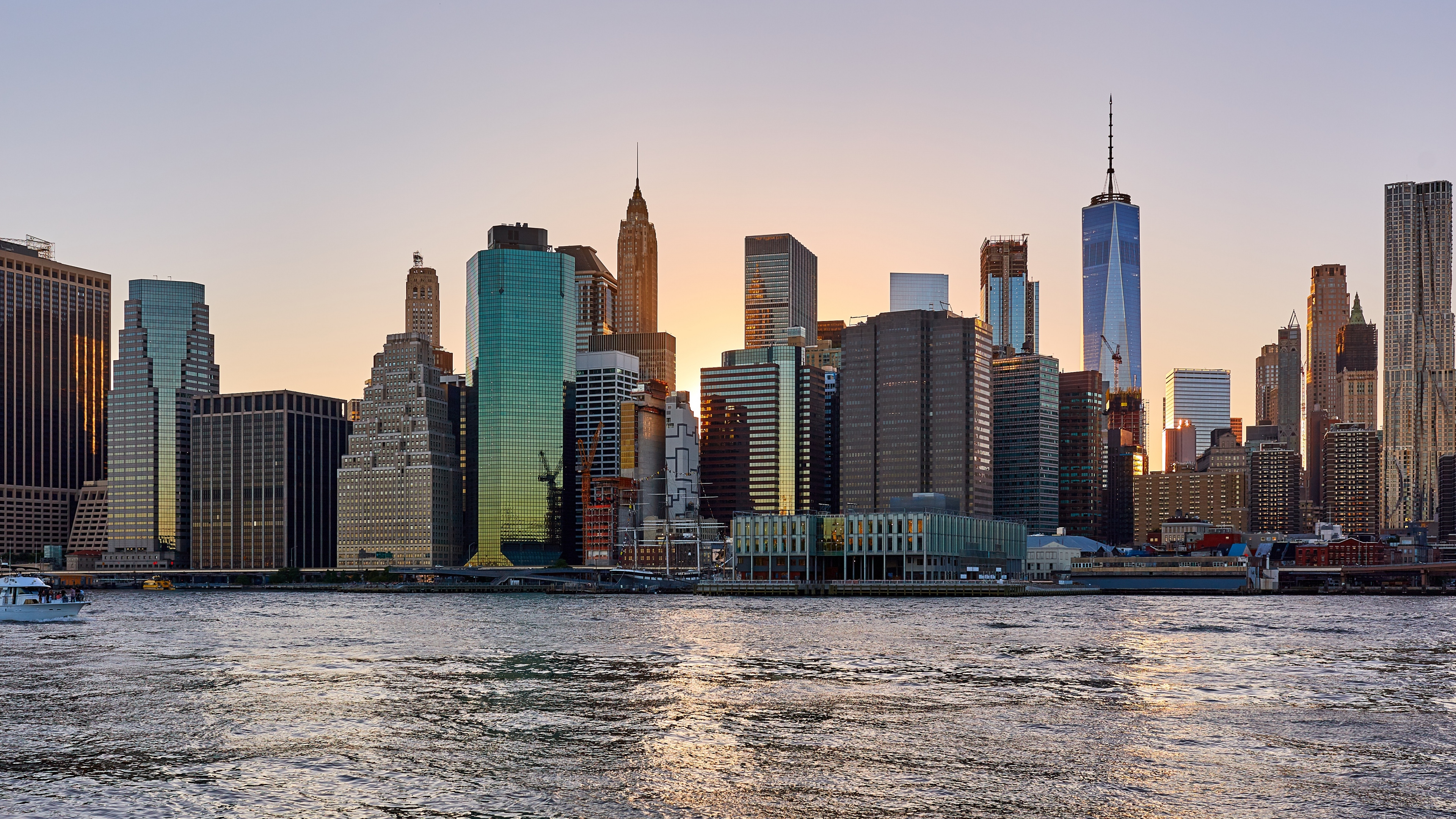 Description: A city skyline with a boat in the water and a boat in the foreground with a boat in the foreground.
