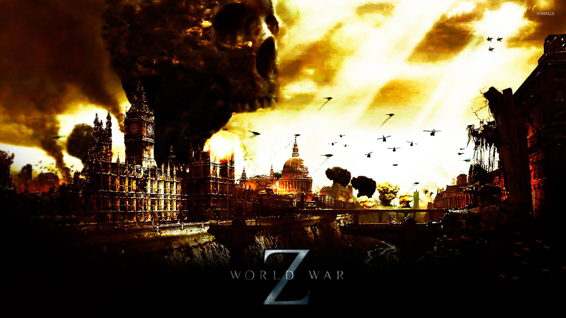 Description: A picture of a city with a lot of smoke coming out of it and birds flying around it and a lot of smoke coming out of the sky.