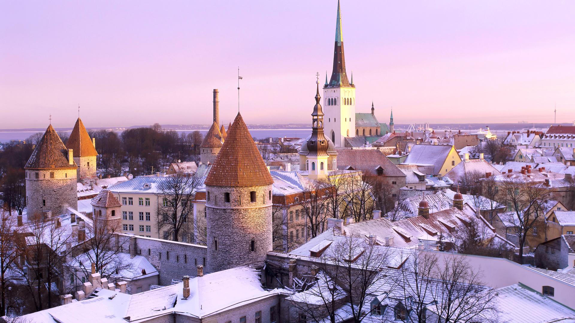Description: A city with a lot of tall buildings and a clock tower in the middle of it's center.