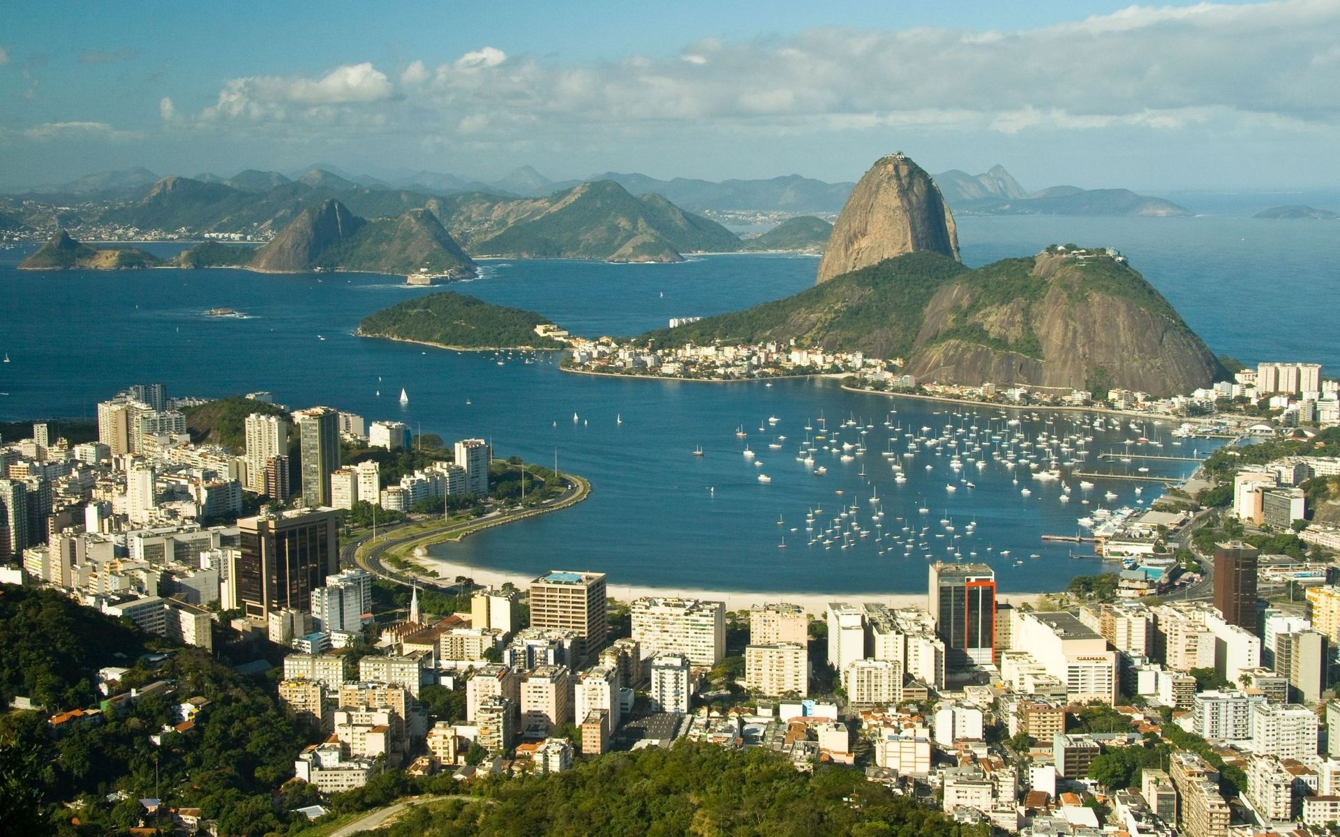 Description: A city with a large body of water surrounded by mountains and a city with boats in it and a mountain in the background.