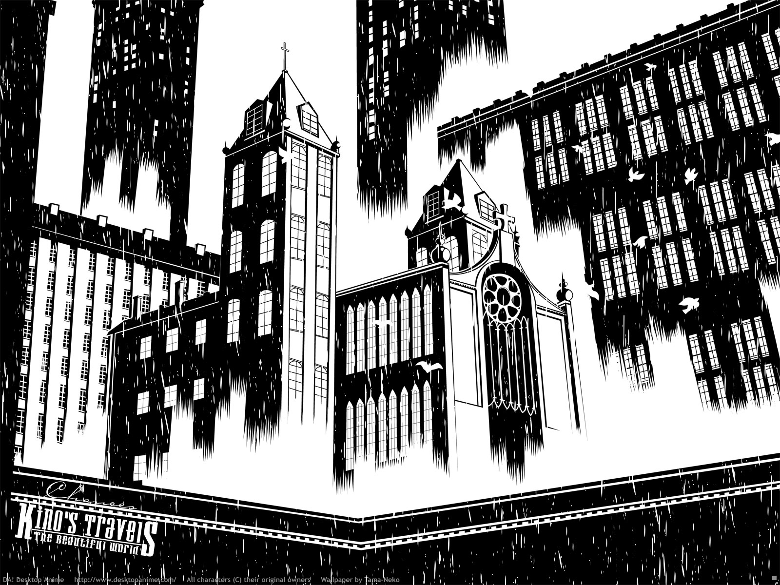 Description: A black and white drawing of a city with tall buildings and a clock tower in the center of the picture.