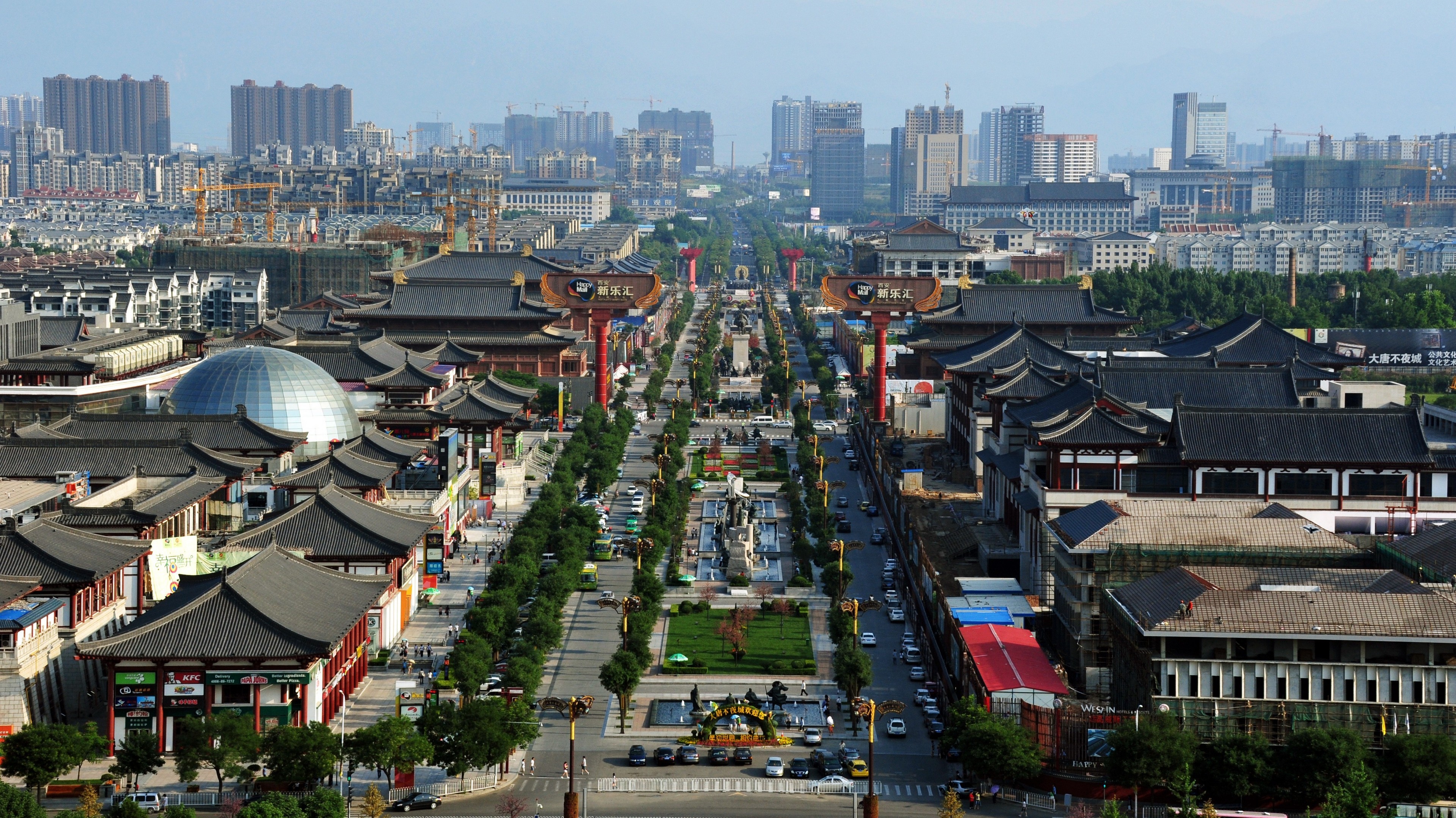 Description: A city with a lot of tall buildings and a lot of cars parked in front of them and a lot of tall buildings.