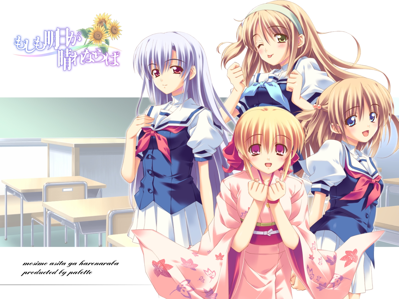 Description: A group of girls standing next to each other in a classroom with a sign that says.