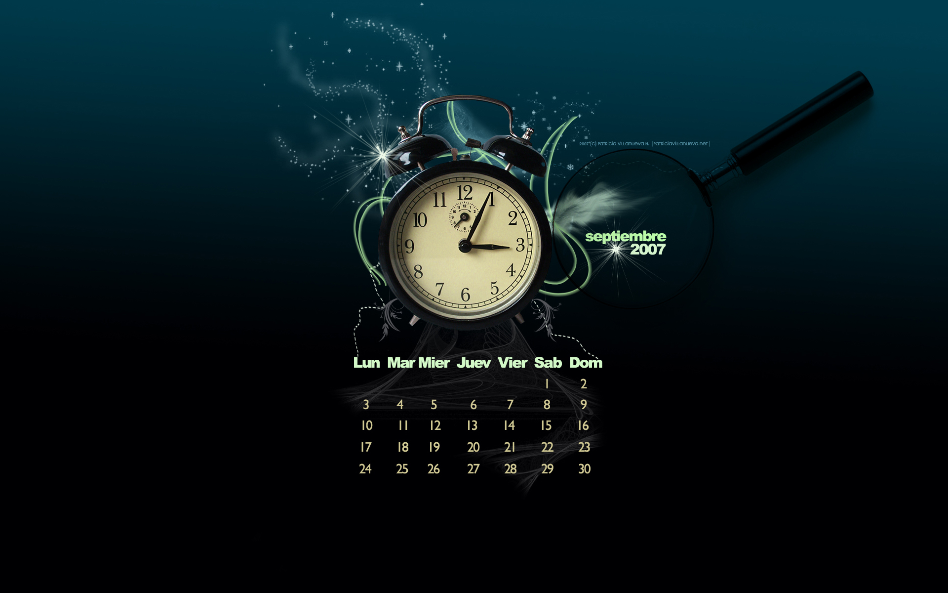 Description: A clock with a magnifying glass on top of it next to a calendar with the date of 3 30.