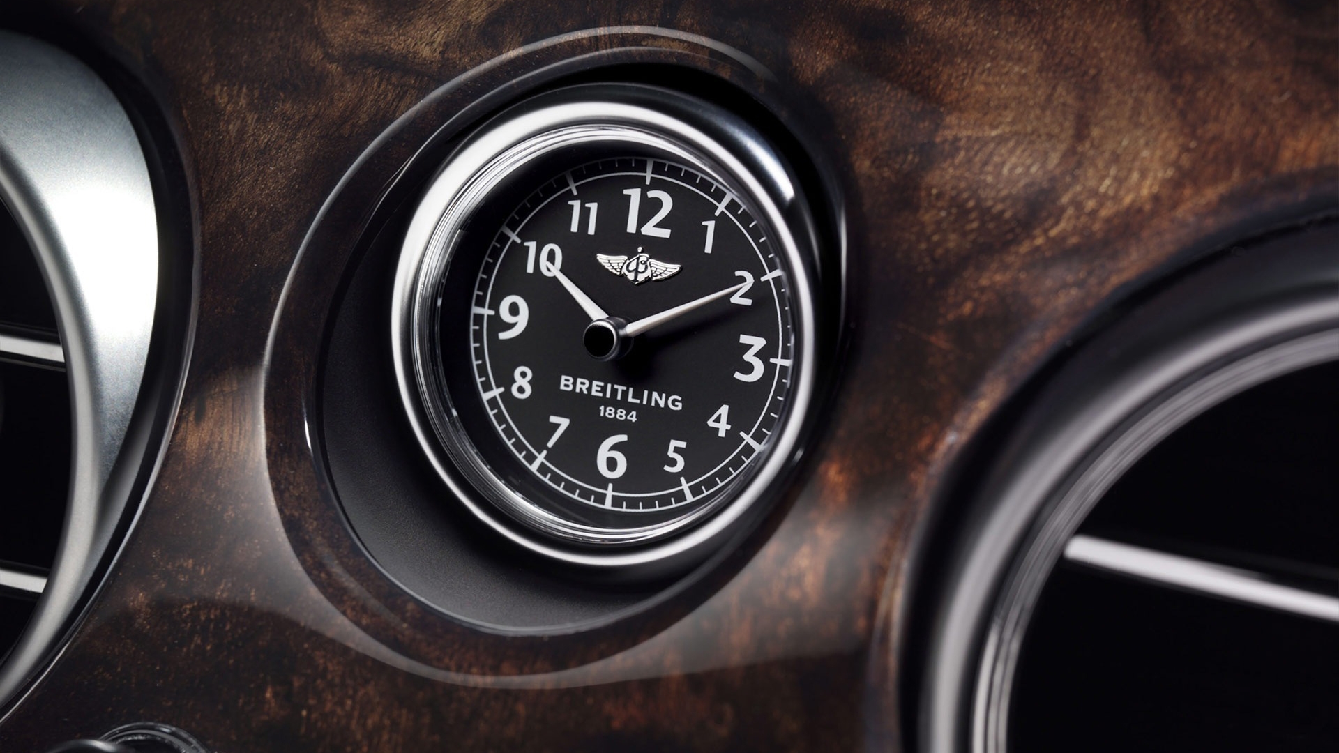 Description: A clock is shown on the side of a car's dashboard.