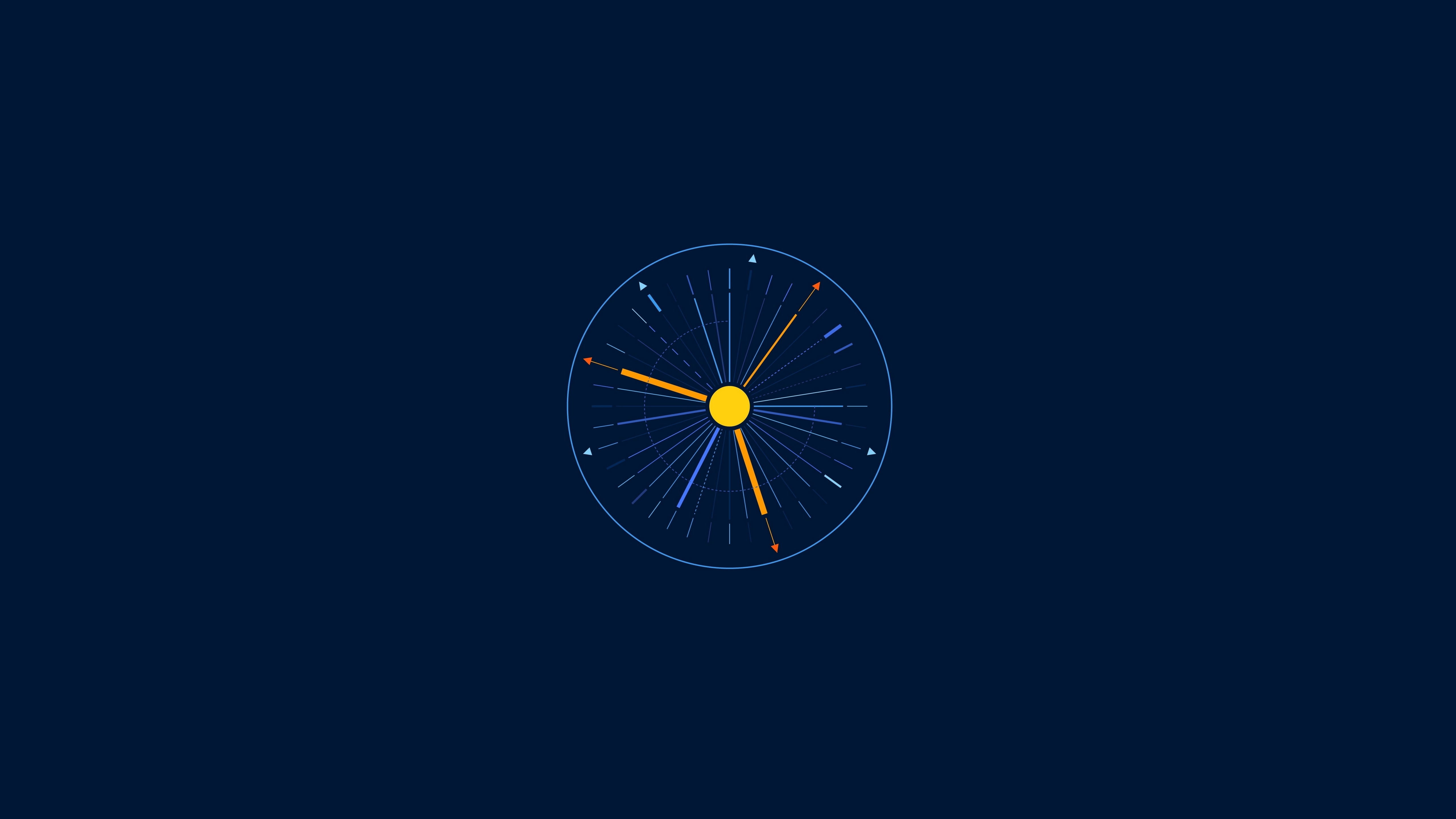 Description: A clock with a yellow face on a dark blue background with a yellow circle in the middle of the clock.