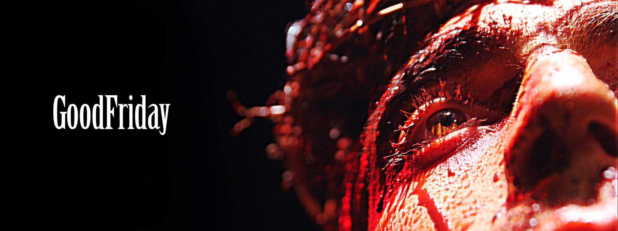 Description: A close up of a person's face with the words good friday on it and a black background.