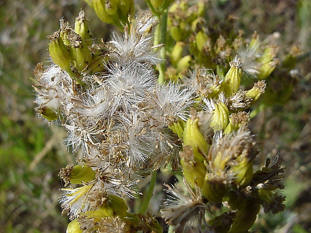 Description: A close up of a plant with flowers in the background and grass in the foreground.