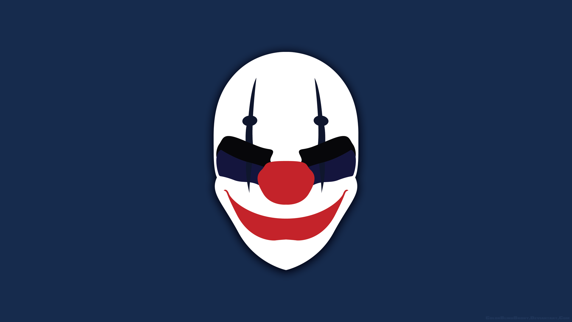 Description: A clown mask with a red nose and black eyes on a blue background with a red nose and black nose.