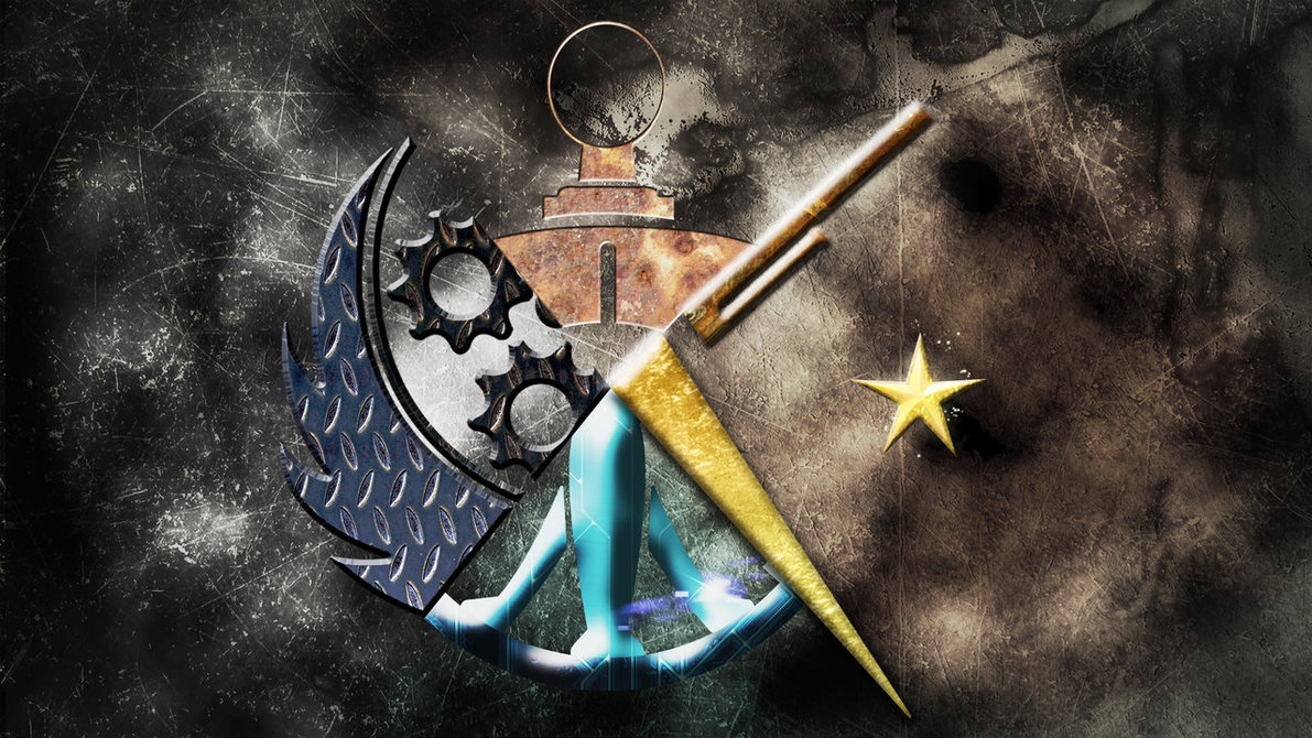 Description: A picture of a coat of arms and a star and a knife and a star on a table top.