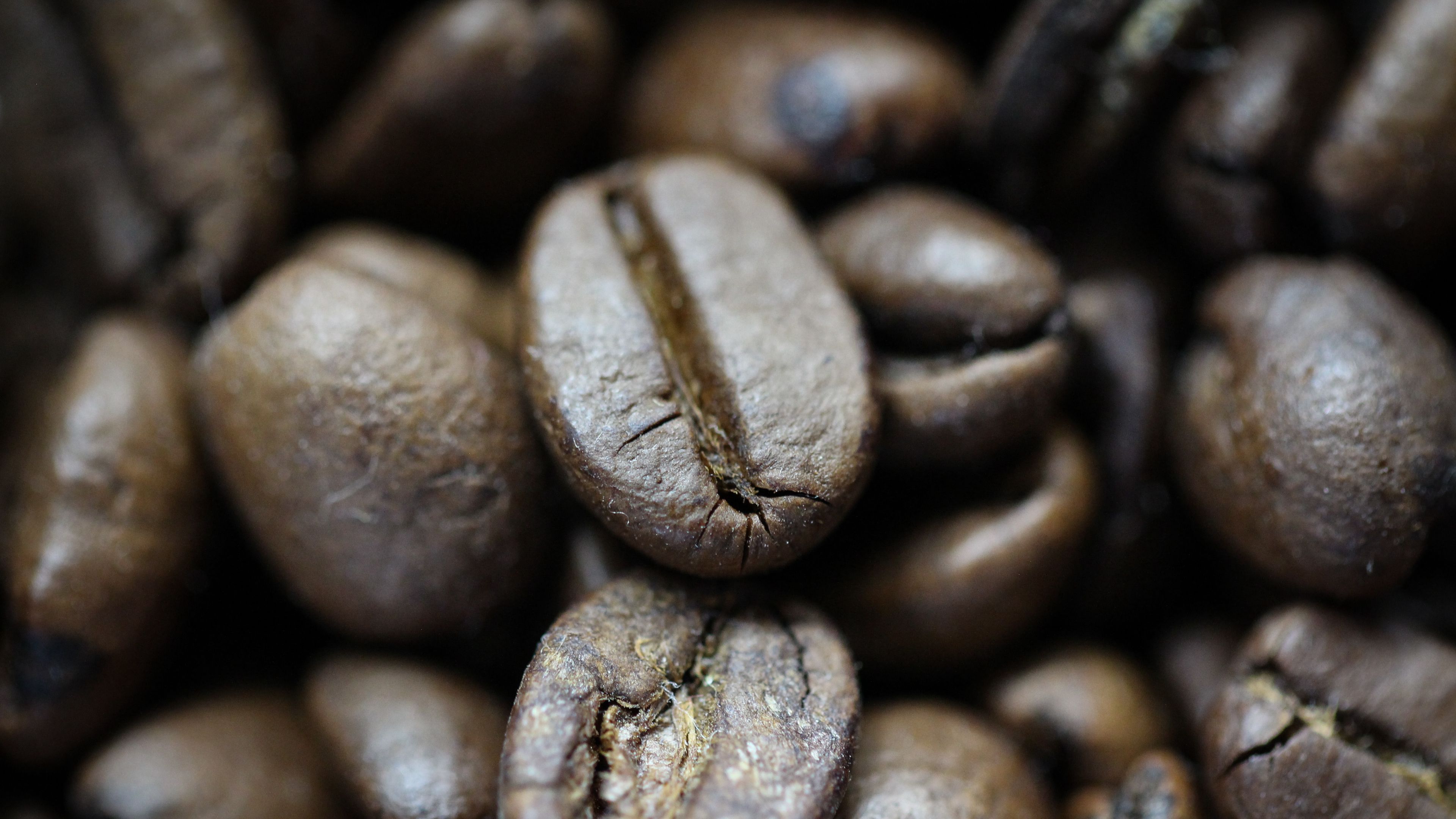 Description: A pile of coffee beans with a lot of brown stuff on them and a few of them being peeled.