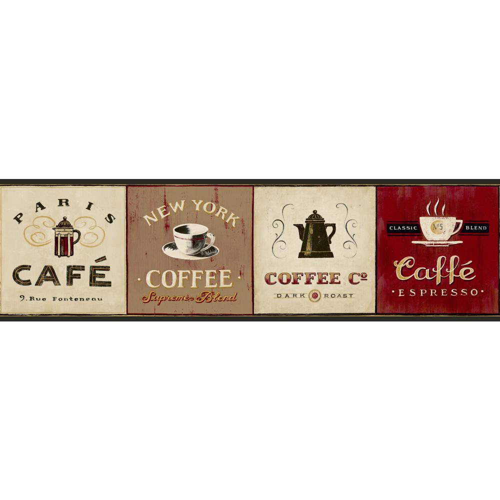 Description: A picture of a coffee sign with different types of coffees on it and a cup of coffee on the side.