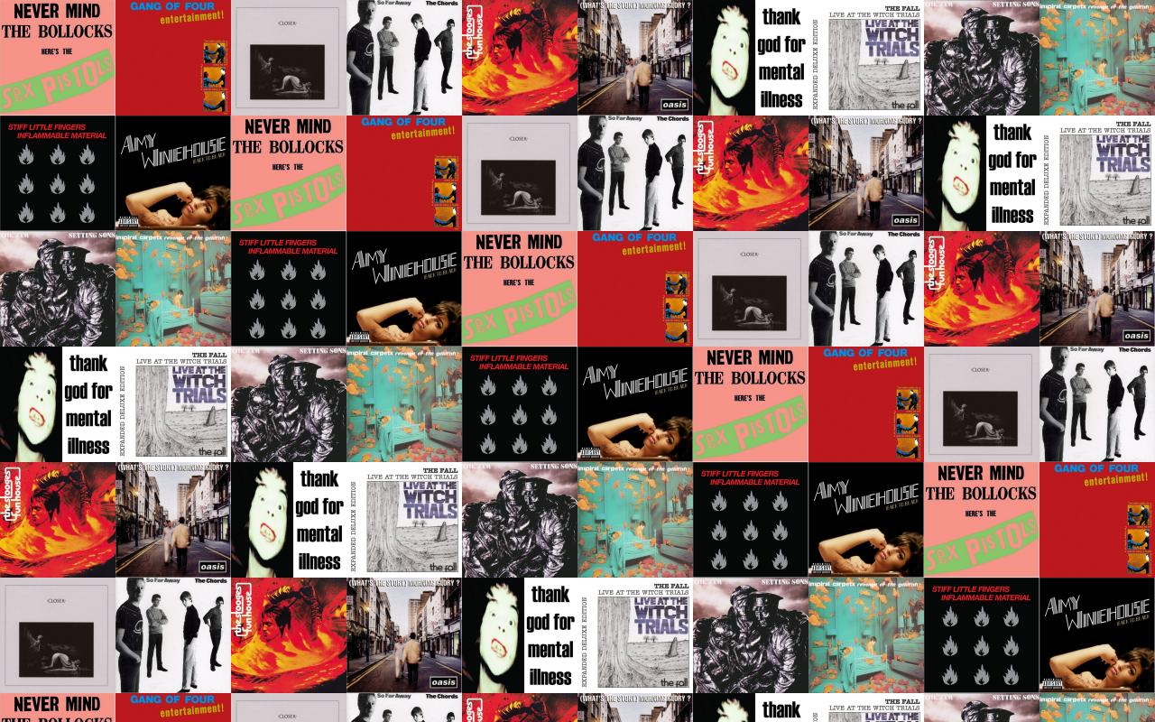 Description: A collage of various album covers with a woman in the middle of them and a man in the middle of the album.