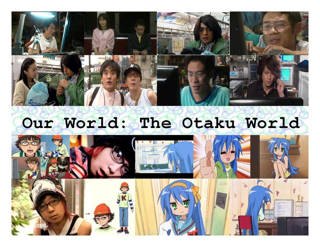 Description: A collage of people with anime characters in the background and the words our world the otaku world.