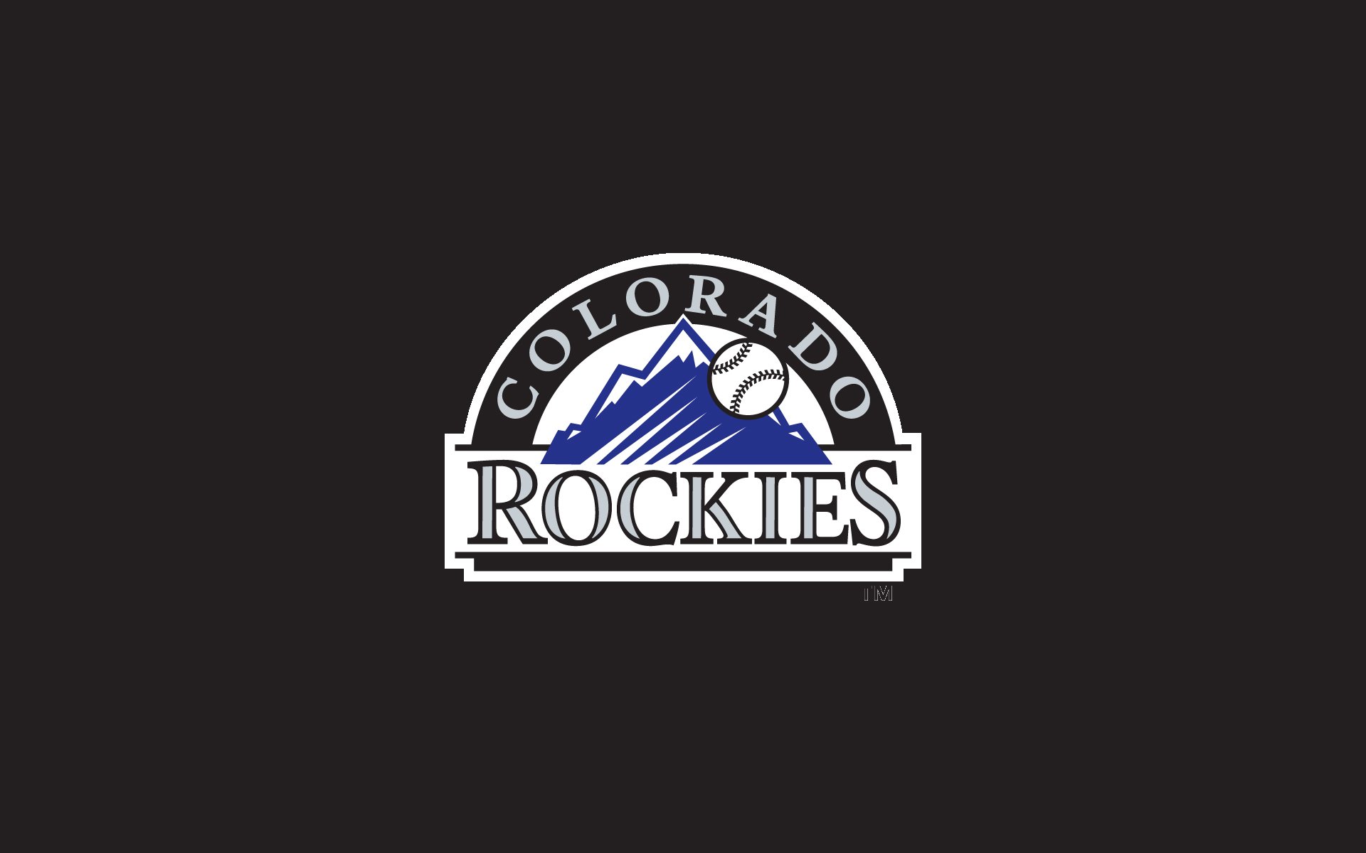 Description: A logo for colorado rockies baseball team on a black background with a mountain in the background and a baseball in the middle.