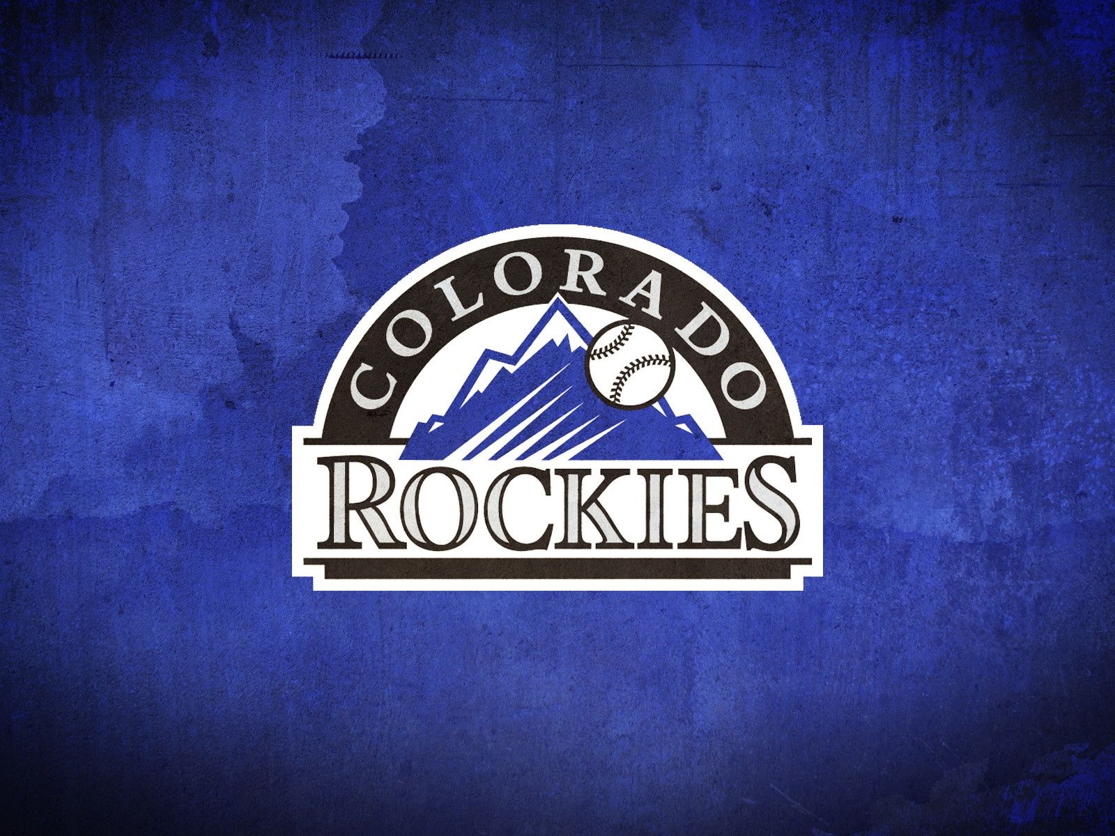 Description: Colorado rockies baseball logo on a blue background with a mountain in the background and a baseball in the center.