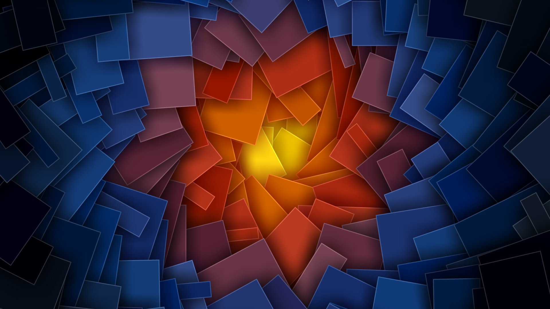 Description: A colorful abstract background with a yellow center surrounded by blue squares and squares of varying sizes and colors.